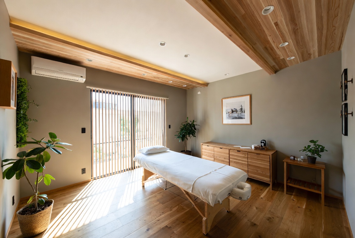 陽の光が入る待合スペースと静かな施術室で、初めての方も落ち着いてお過ごしいただけます。